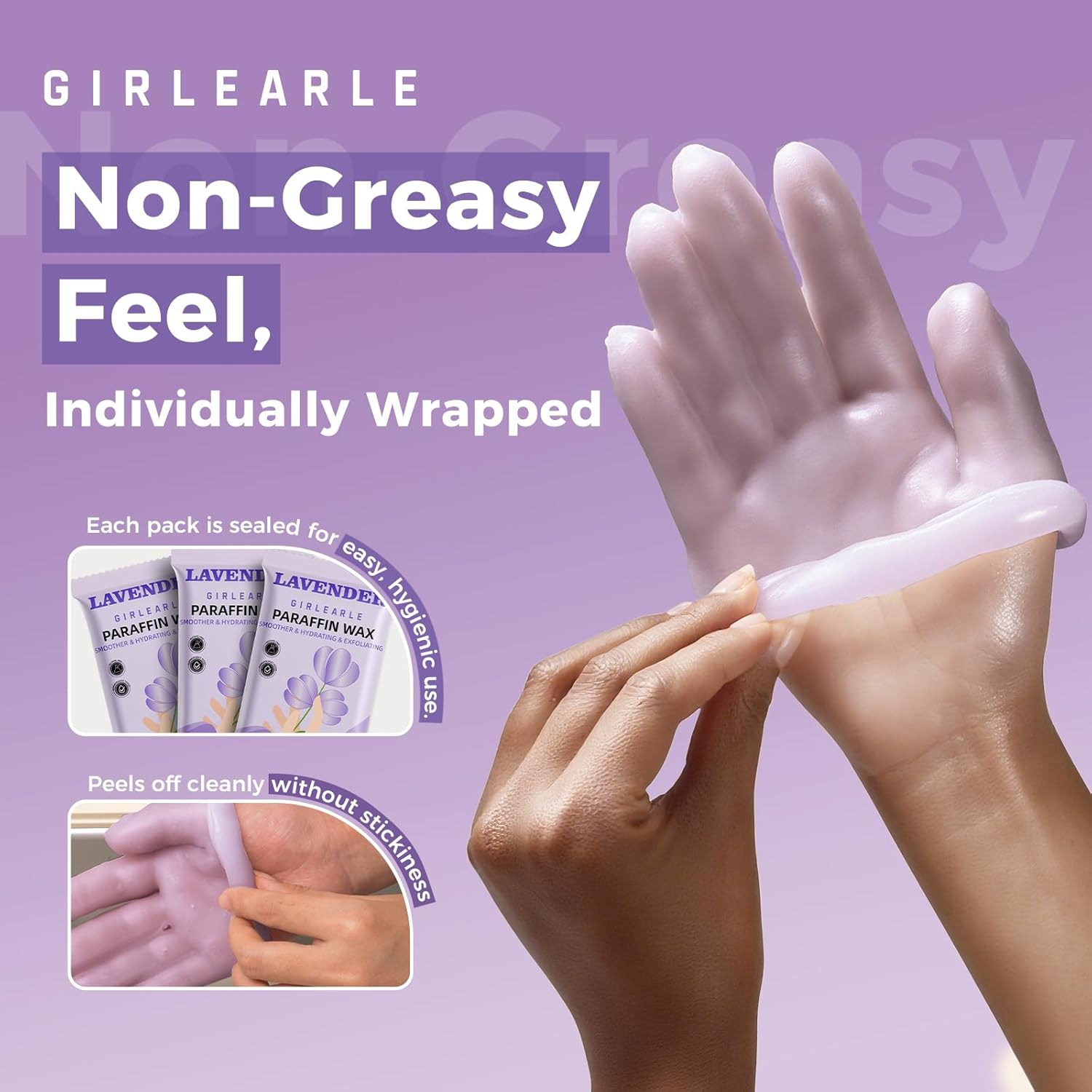 - Peels Off Clean, No Sticky Residue: Designed to peel off easily in one piece, GIRLEARLE paraffin wax for hands and feet leaves no greasy or sticky residue behind. No mess, no cleanup—just smooth, refreshed skin after every session.