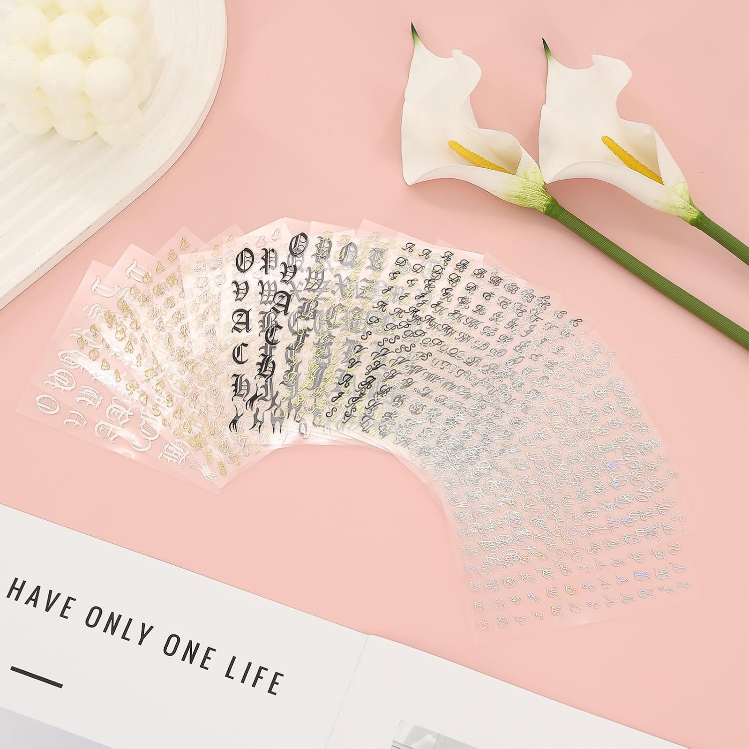 - Personalized Letter Designs: Elevate your nail art with our letter nail stickers, featuring 18 sheets of 3D letter-themed designs. These nail decals are perfect for both natural and artificial nails, allowing you to create unique and personalized nail art. From bold statements to subtle accents, these nail stickers letters add a touch of elegance and creativity to manicure.