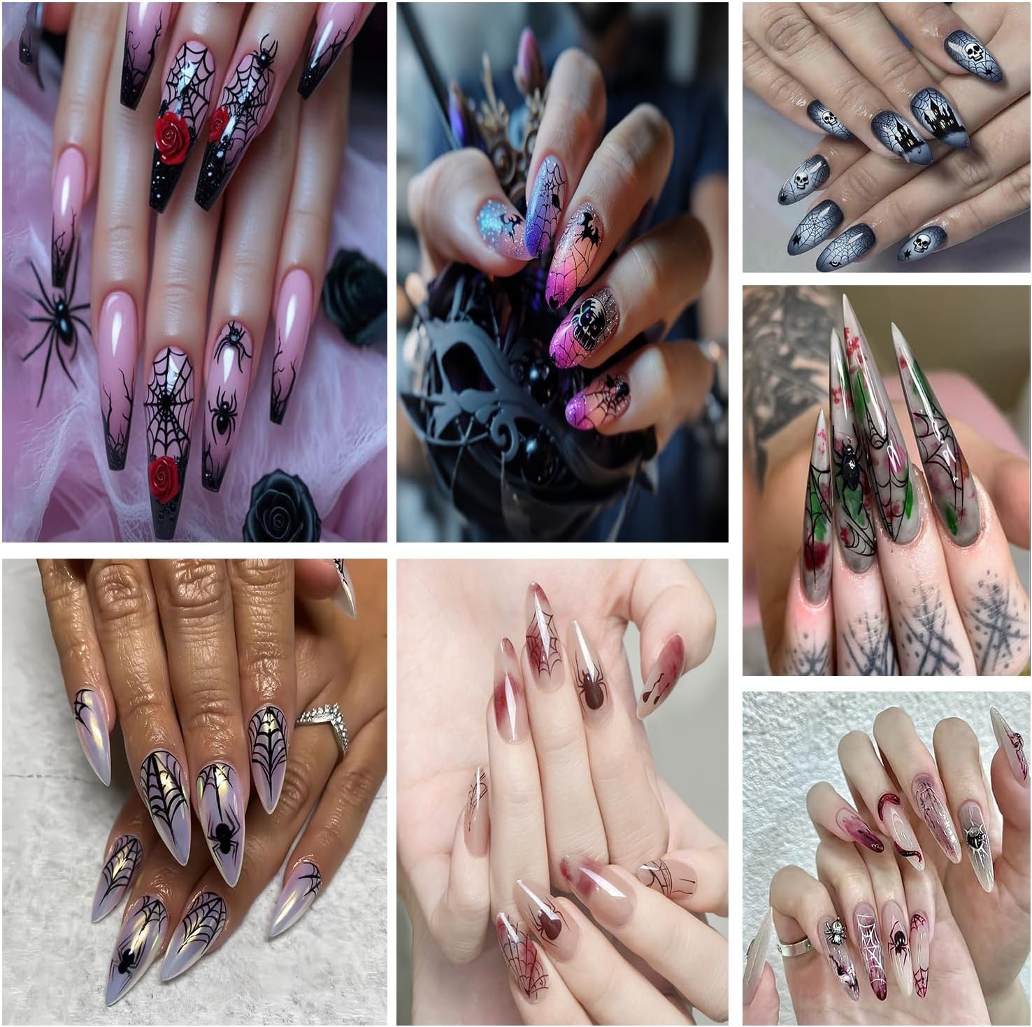 - Easy to Use: 3D self-adhesive Halloween spider spider web nail design is simple and quick to use,nail decals work great on bare nails, they will stay on for a long time and will not peel off your nails, enjoy the feeling of nail art