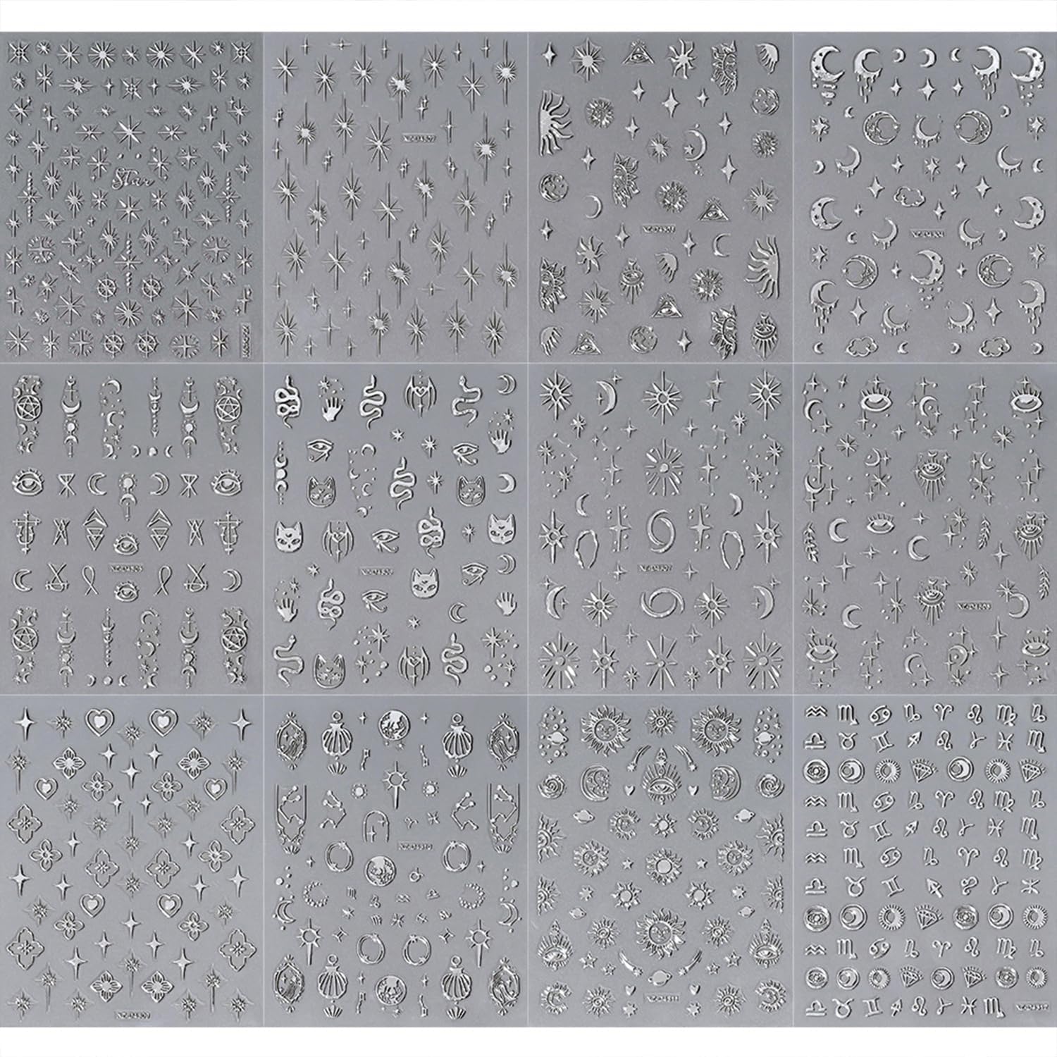 - Quantity: You will get 12 sheets of silver nail art stickers, including star and moon pattern designs, not easy to fall off or fade, can easily create a variety of themed nail art