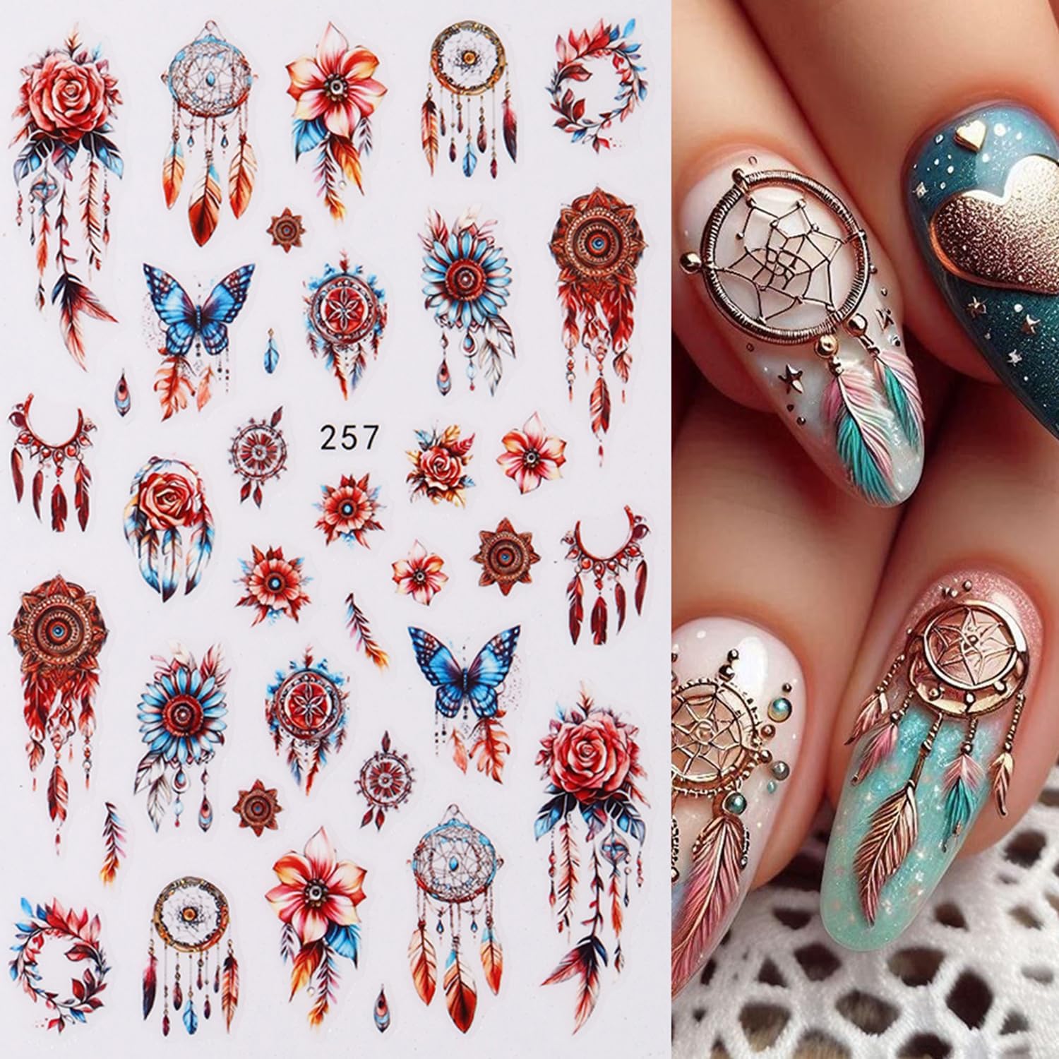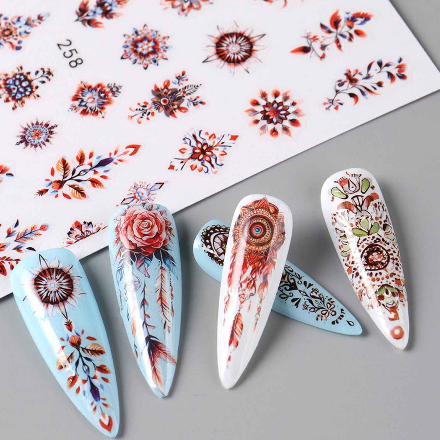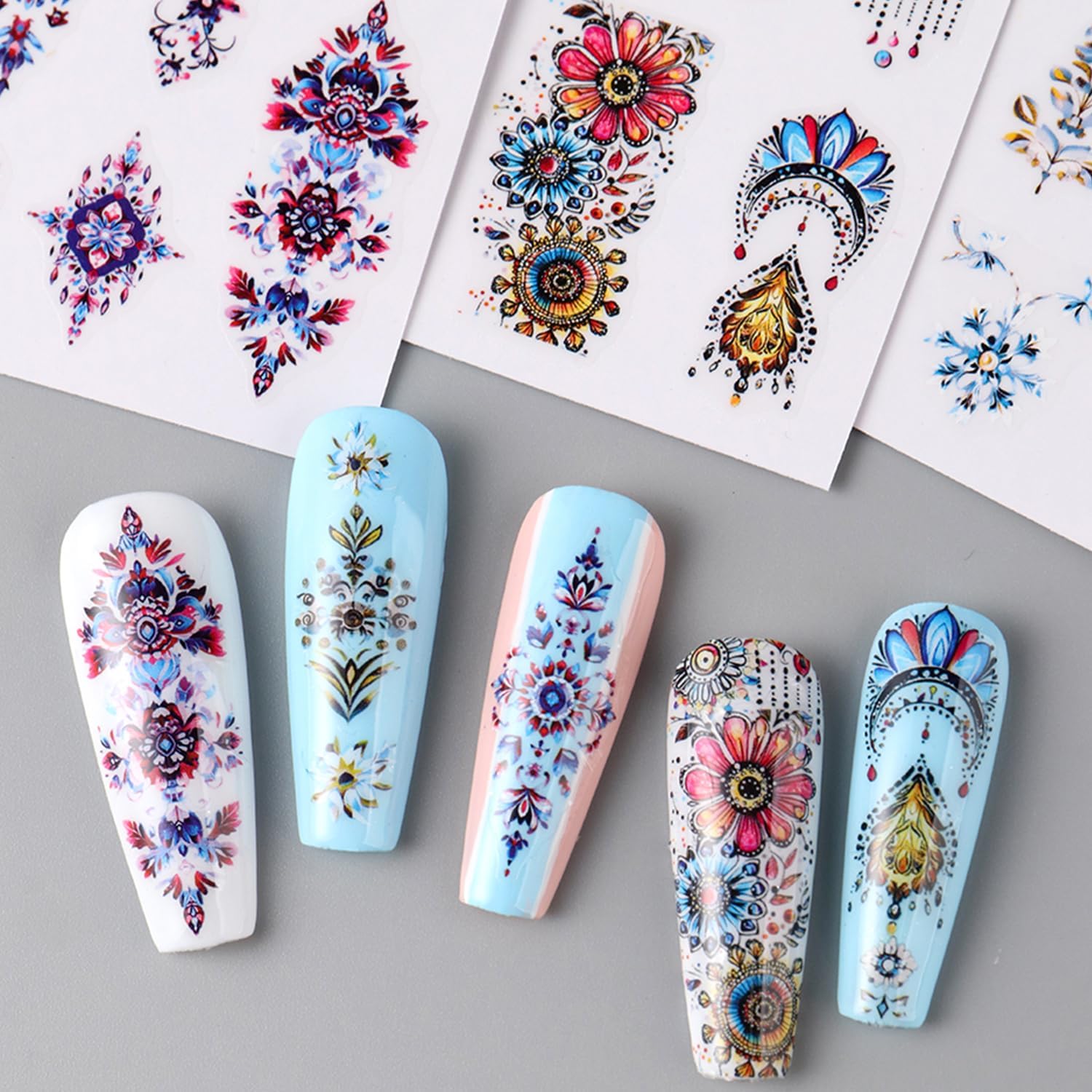6 Sheets Bohemian Nail Art Stickers Decals Retro Feathers Nails Stickers for Nail Art Self-Adhesive Nails Decals