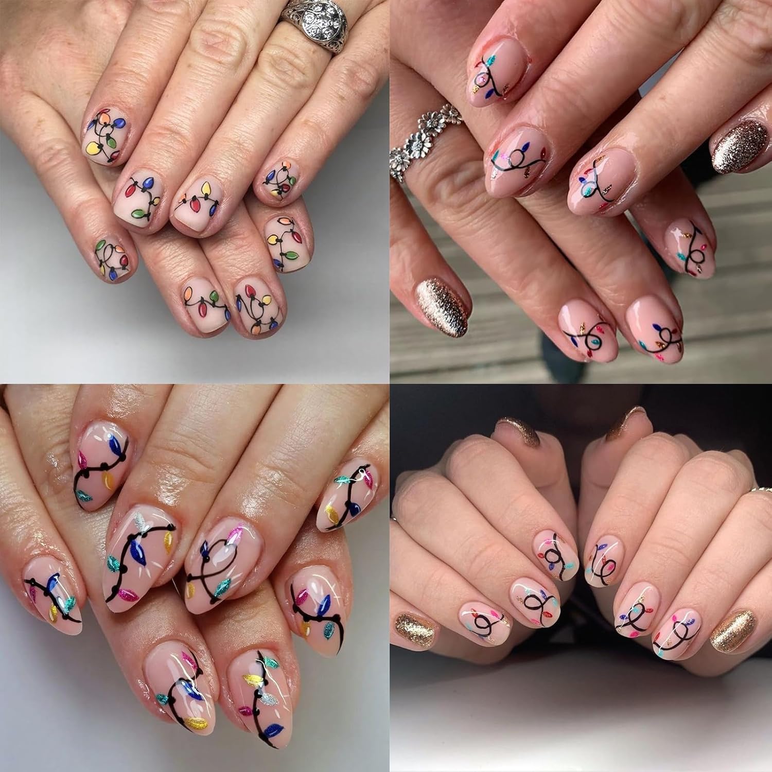 2Pcs Christmas Nail Art Stickers Decals 5D Embossed Christmas Nail Decals Colorful Light String Nail Stickers Xmas Lanterns Nail Supplies New Year Winter Nails Supplies for Women Manicure Tip Decor